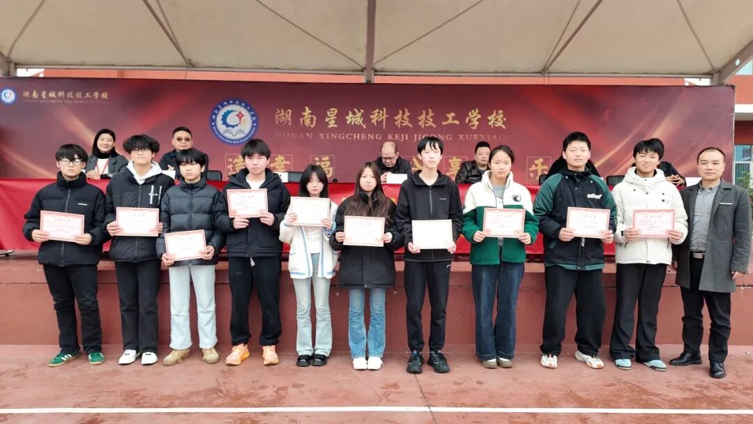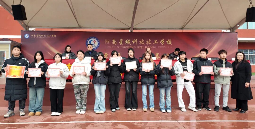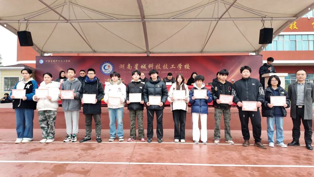 2026年1月16日下午,全校师生齐聚田径场,隆重召开期末总结暨表彰大会。大会全面回顾本学期育人成效,并对表现突出的集体与个人予以表彰。以下十大荣誉,见证星城学子的多元成长: 学工处兼教务处陈阳主任表彰发言 陈主任:德技并修强根基,习惯养成铸匠心,星城奋进共成长。 01 元旦晚会优秀节目奖 “以舞步诠释青春,用歌声传递梦想!” 元旦晚会节目一等奖:2402班《大山》 元旦晚会二等奖:2501班《上春山》 三等奖:2403班《舞狮》/2401班《智斗》 最佳创意奖:2506班、2509班 最佳组织奖:英语情景剧、社团劲舞 02 三好学生 “德行为先,学业为本,体魄为基!” 03 优秀班干部 “心中有责,肩上有担,脚下有光!” 04 学习之星 “书山有路勤为径,学海无涯苦作舟!” 05 文体之星 “文能提笔安天下,武能赛场展英姿!” 06 守纪之星 “不以规矩,不能成方圆!” 07 劳动之星 “劳动最光荣,实干最可敬!” 08 进步之星 “不积跬步,无以至千里!” 09 护校队优秀标兵 “一身制服,一份责任;一声哨响,一道防线!” 10 优秀学生会干部 “服务同学,锻炼自我,奉献校园!”